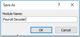 When I closed the new macro, I was prompted with the option to change the name of the module. Naming the module is important if you’re trying to further mask the suspiciousness of the database.
