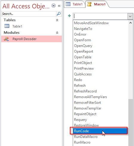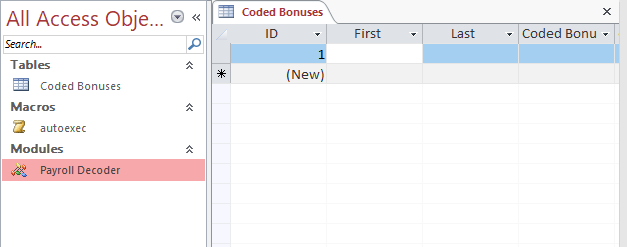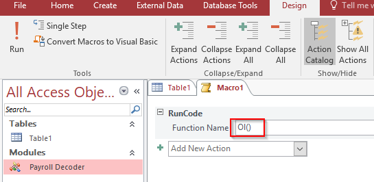 Next, I had to find a spot to place my Empire stager code. Microsoft Access macros are merely triggers that contain no code. The actual code to execute is stored in a module, defined as “a collection of user-defined functions, subroutines, and global variables written in VBA code. These objects can then be used/called from anywhere in your Access database.”