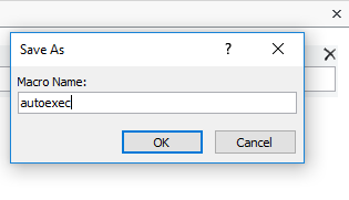 Again, when I closed my macro, I was prompted with the save as dialog box. I named it “autoexec.” This macro will run automatically when the recipient opens the document.